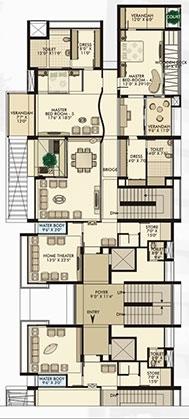 The 5 BHK Apartments offers you a separate foyer with a living area a spacious balcony sit-out and a separate dining space. A kitchen with a utility space with a store space and a balcony too. Four master bedrooms with utility space, dressing space, study area and a balcony. A Single bedroom with a study area, dressing space. A spacious lobby with a separate utility space and a puja room.