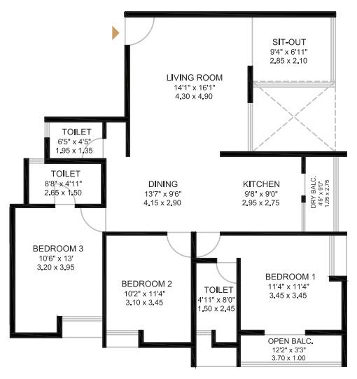 Carpet Area : 890 Sq.ft, 959 Sq.ft, 993 Sq.ft and 1011 Sq.ft