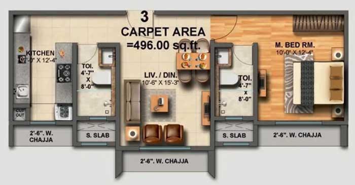 Carpet Area : 496 Sq.ft