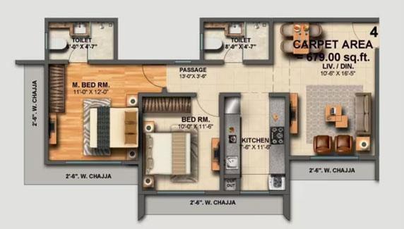 Carpet Area : 679 Sq.ft and 689 Sq.ft