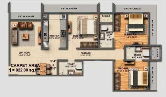 Carpet Area : 922 Sq.ft