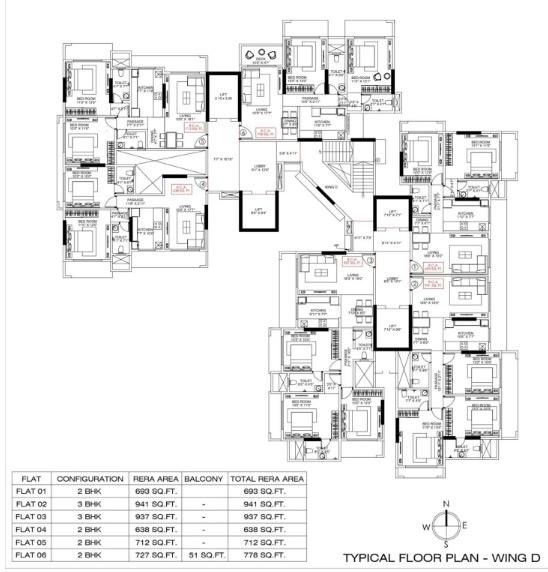 Carpet Area : 940 Sq.ft, 1275 Sq.ft.