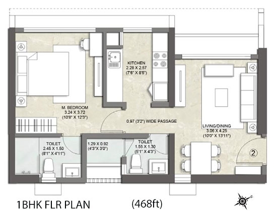 Carpet Area : 468 Sq.ft