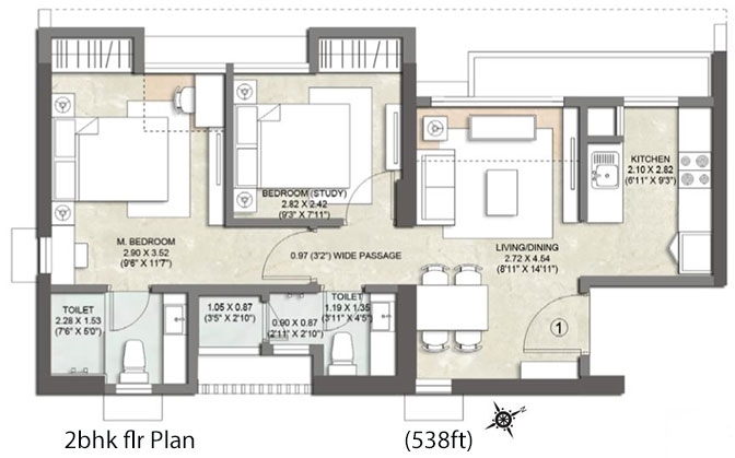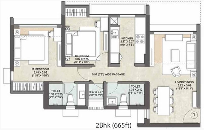 Carpet Area : 538 Sq.ft and 665 Sq.ft