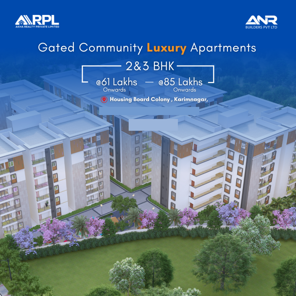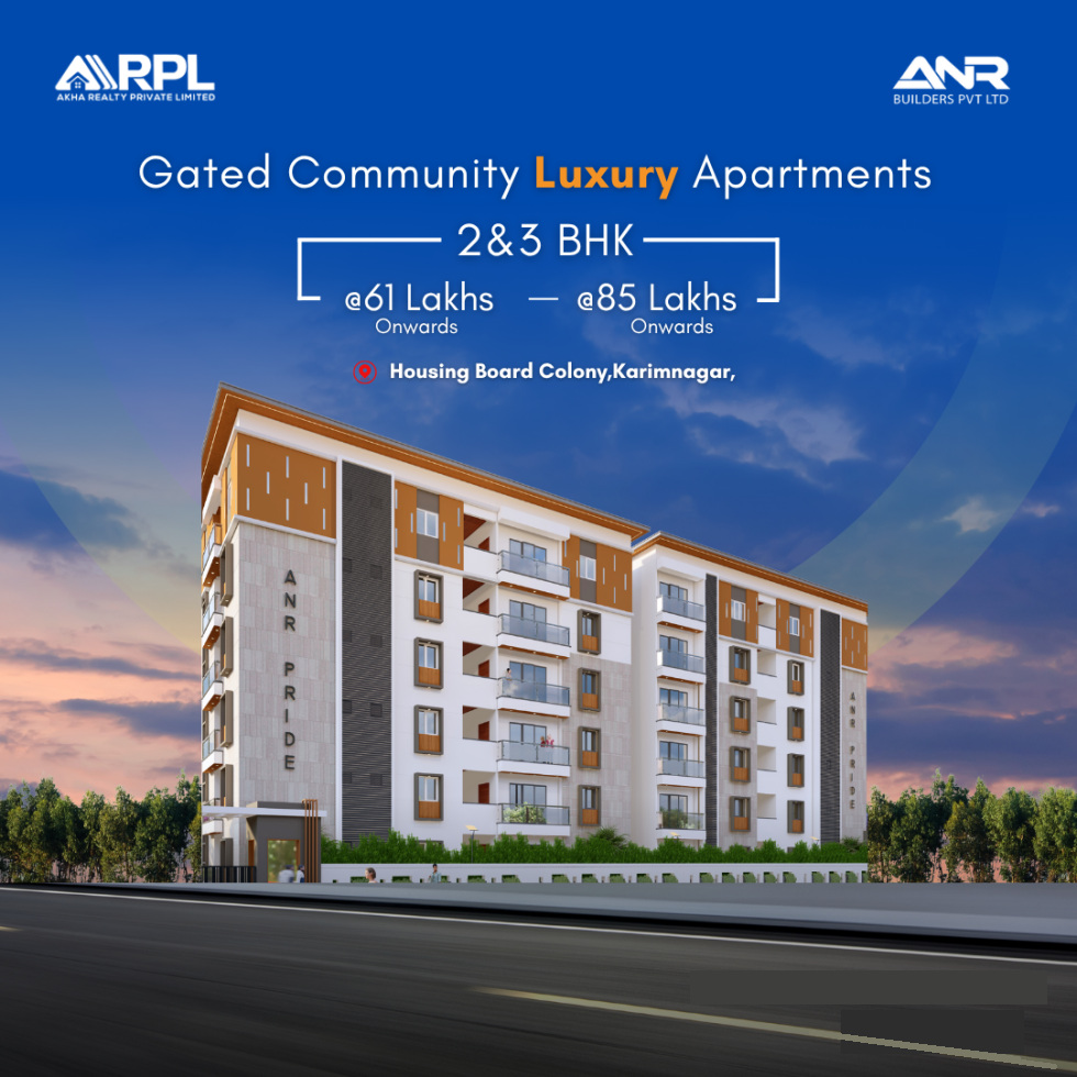 ANR Group Builders is proud to launch its latest luxury gated community project called ANR Pride, located in the prime area of Housing Board Colony, Karimnagar. This exclusive project offers 148 well-designed apartments with spacious 2 BHK and 3 BHK flats, starting at just ₹61 lakhs. Enjoy a modern lifestyle with top-class amenities, 24/7 security, and a peaceful environment. Hurry! Book your dream flat now. We’ll take care of everythin...