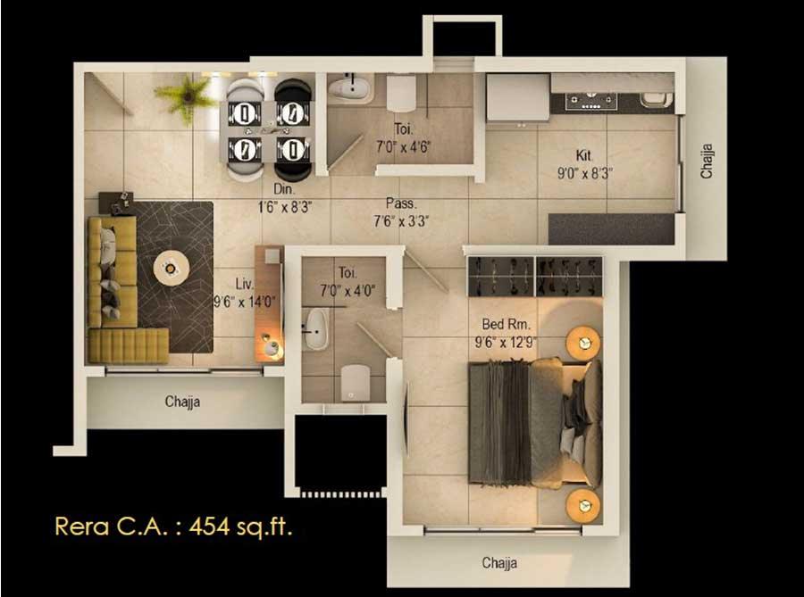 Carpet Area : 454 Sq.ft, 559 Sq.ft.