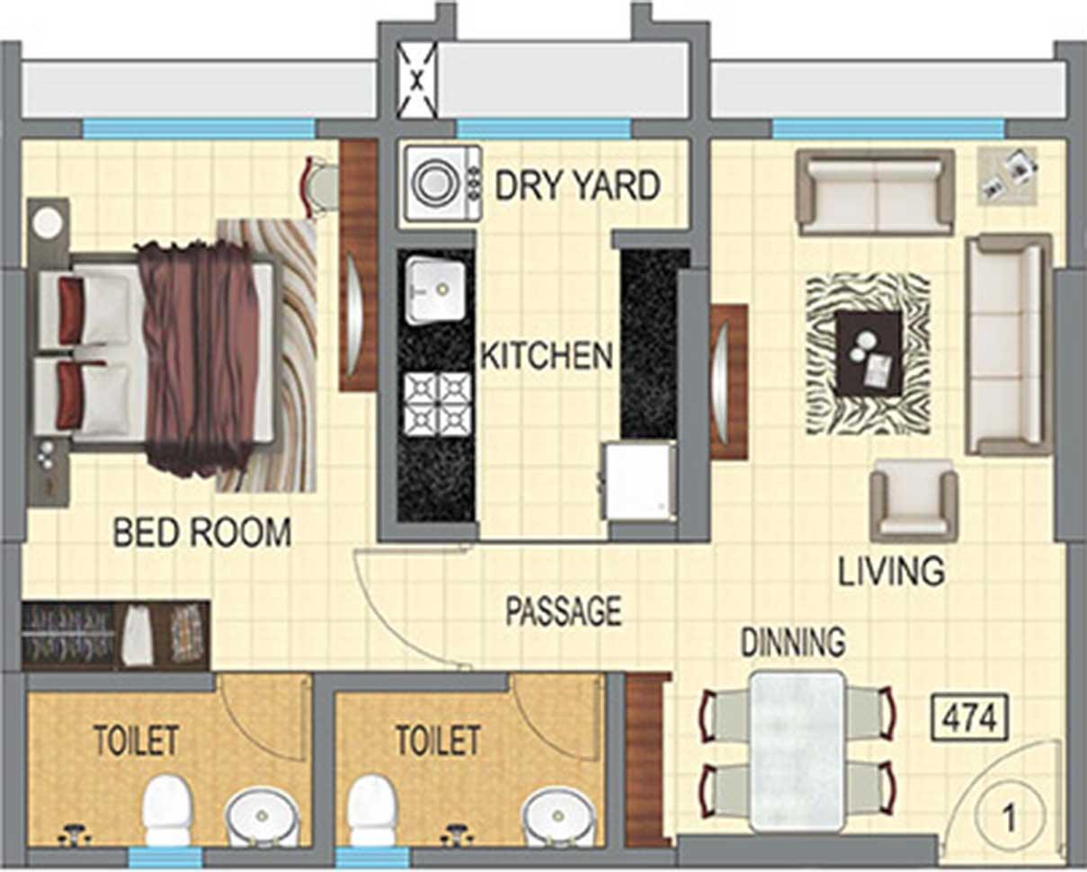 Carpet Area : 474 Sq.ft.