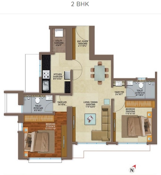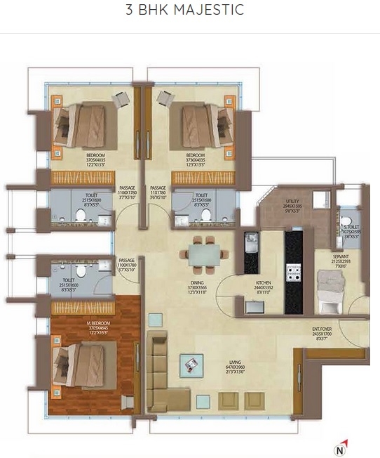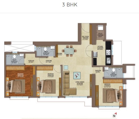 * Premium quality RAK or equivalent vitrified tiles flooring and skirting in living, dining, all bedrooms, kitchen and passage.