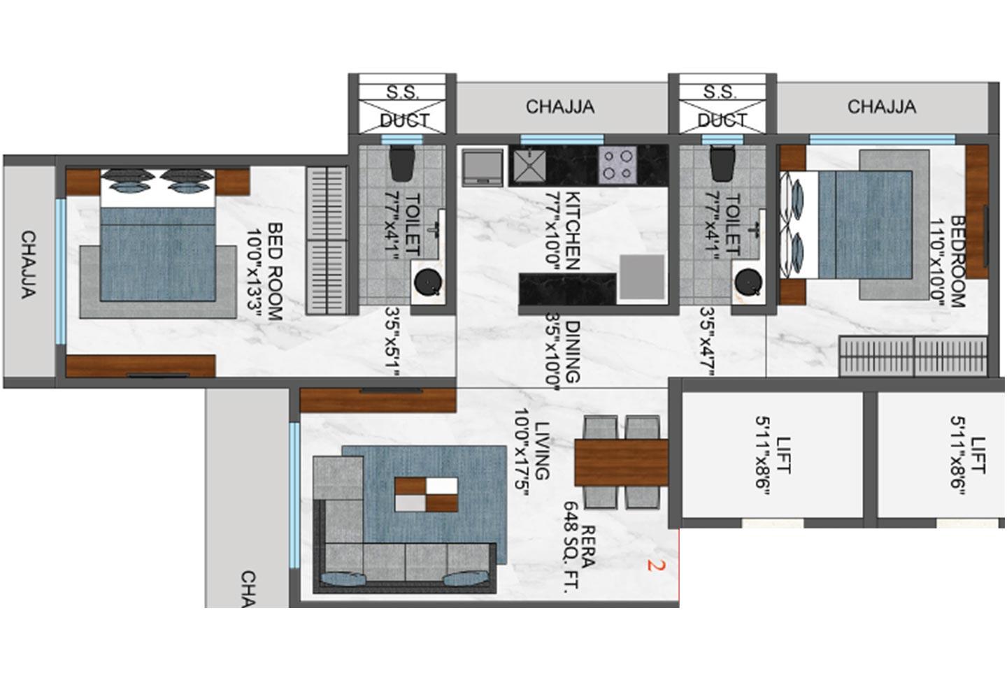 ![]() | 2 Bedroom2 Bathroom | Carpet Area : 648 Sq.ft | Under Construction December 2026 | On Request View Offers |