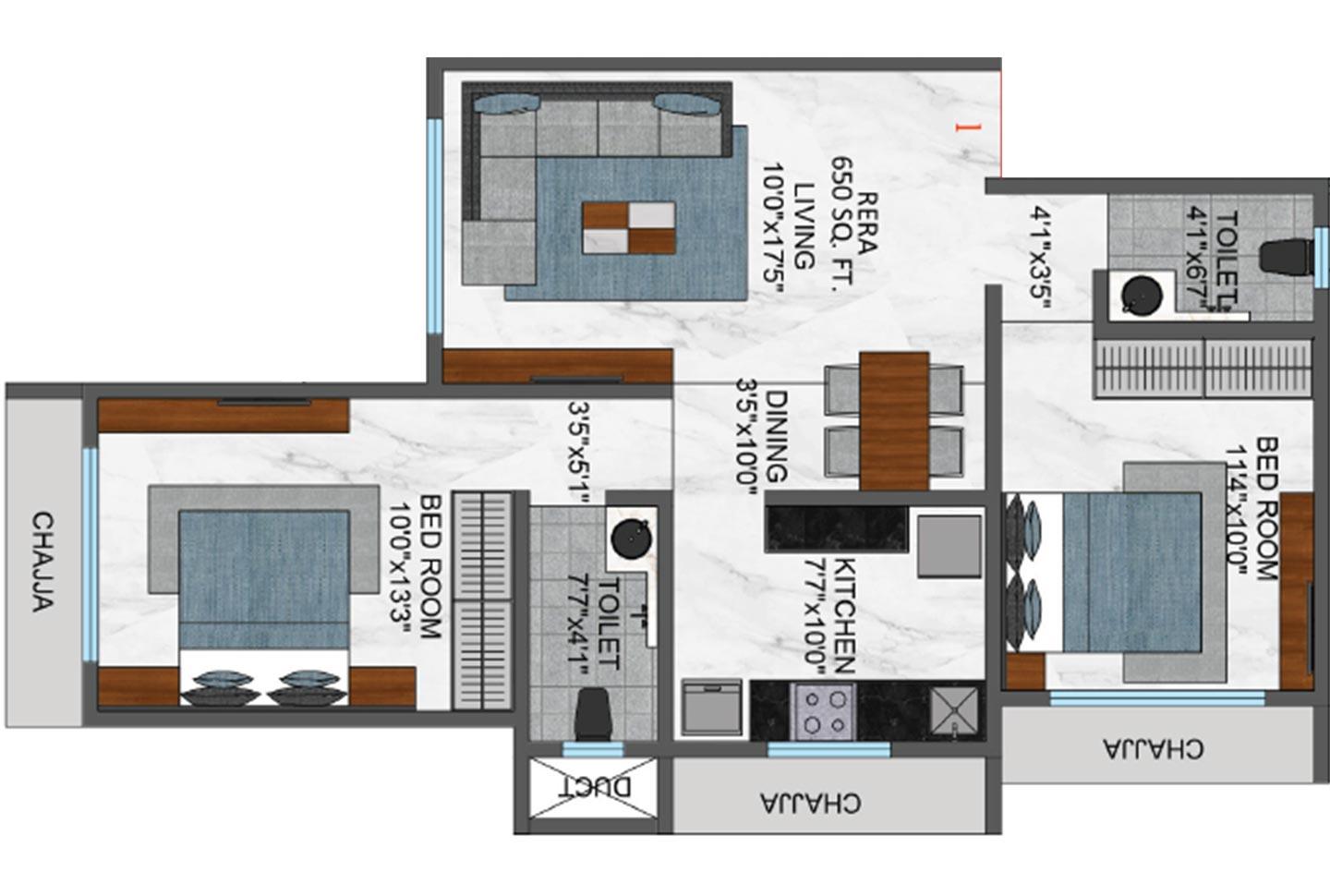 ![]() | 2 Bedroom2 Bathroom | Carpet Area : 650 Sq.ft | Under Construction December 2026 | On Request View Offers |