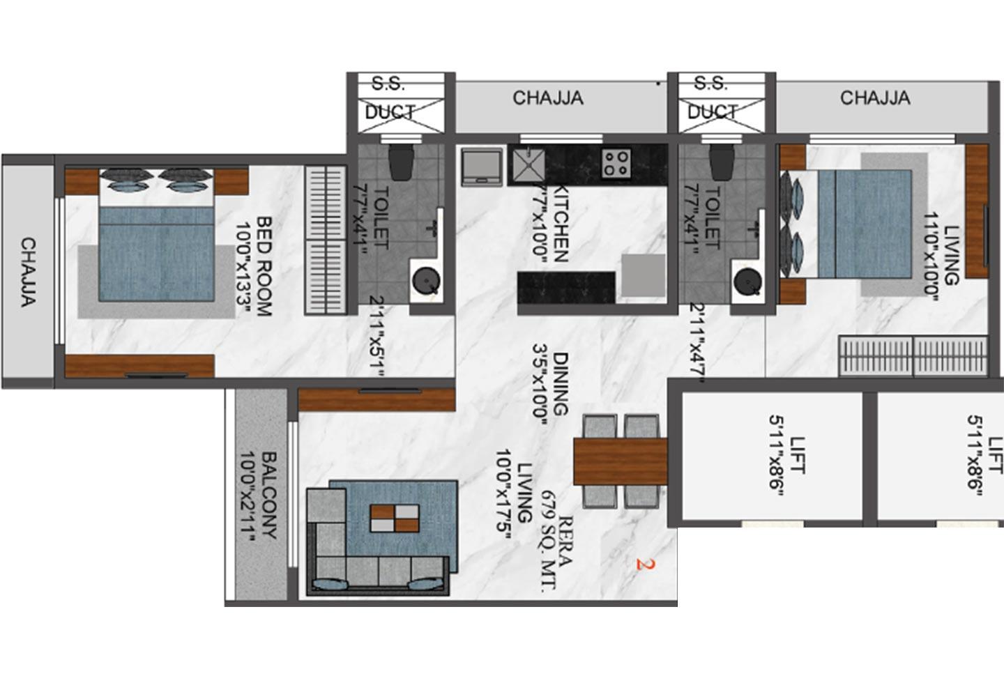 ![]() | 2 Bedroom2 Bathroom | Carpet Area : 679 Sq.ft | Under Construction December 2026 | On Request View Offers |