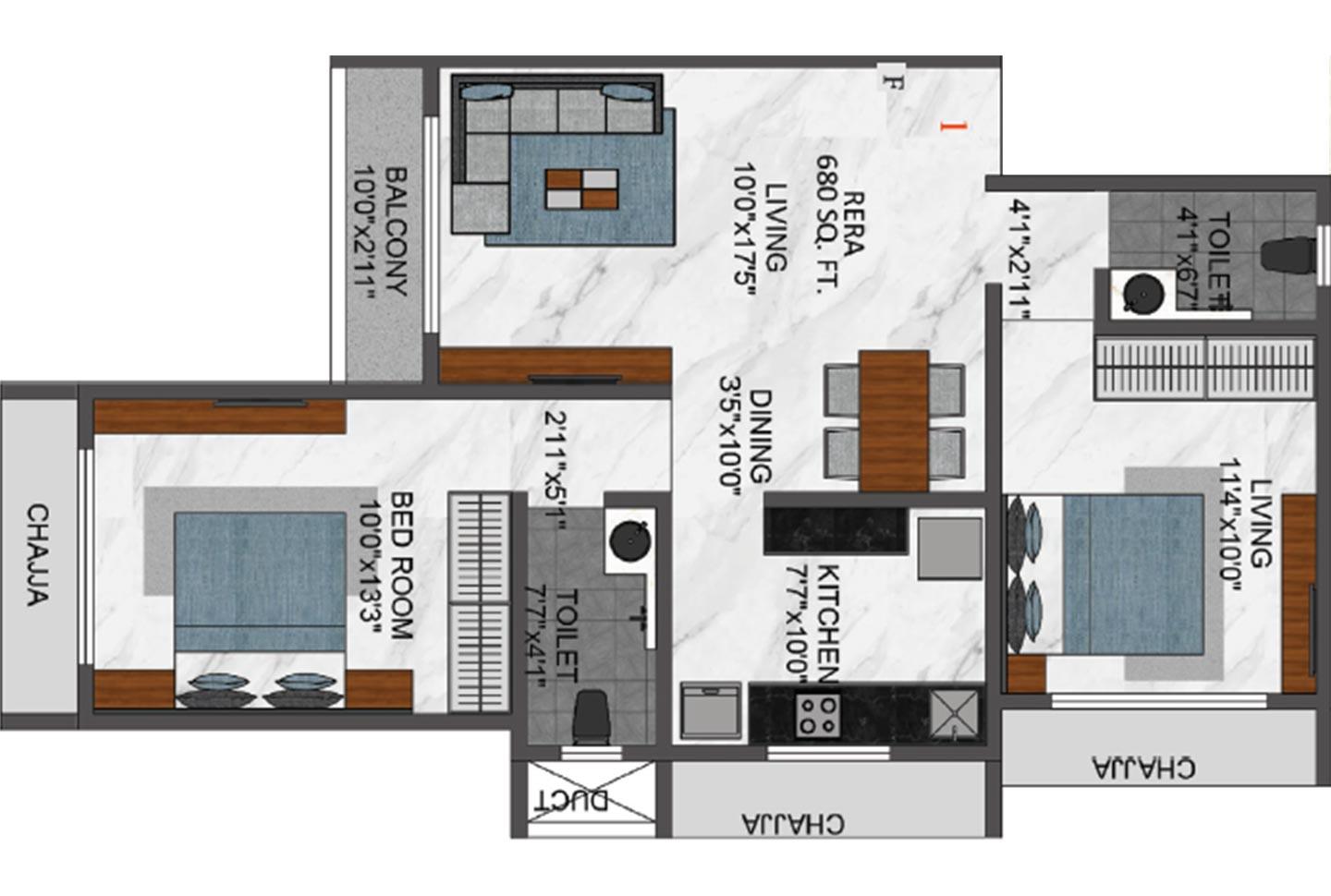 Carpet Area : 648 Sq.ft, 650 Sq.ft, 679 Sq.ft, 680 Sq.ft.
