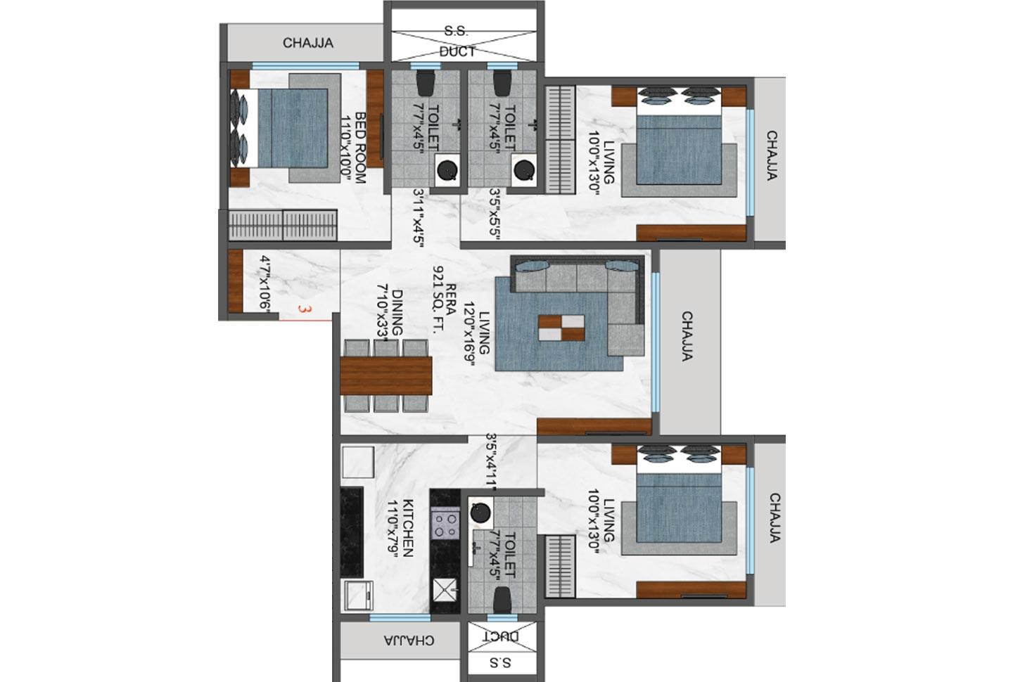 ![]() | 3 Bedroom3 Bathroom | Carpet Area : 921 Sq.ft | Under Construction December 2026 | On Request View Offers |