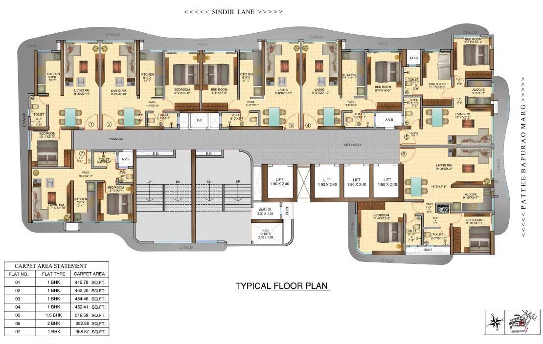 Located at Cawasji Patel Tank, Bhuleshwar, Mumbai. The complex has well settled neighbourhoods and has few famous landmarks like Islampura Masjid, Shri Laxmi Narayan Mandir, Gol Devel Temple, Alankar Theater, Apana Bazar, Bishnoi Dharmshala & Shiv Sagar. The region has well road network like Flakland 4th Lane, Kika Street, Panjrpol Street, Khatar Gali, Bara Imam Road & PB Marg.