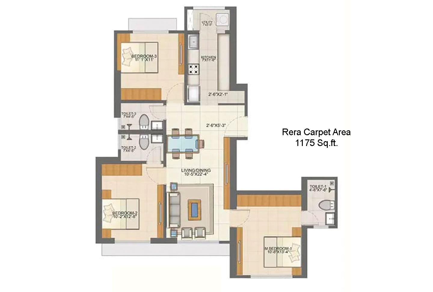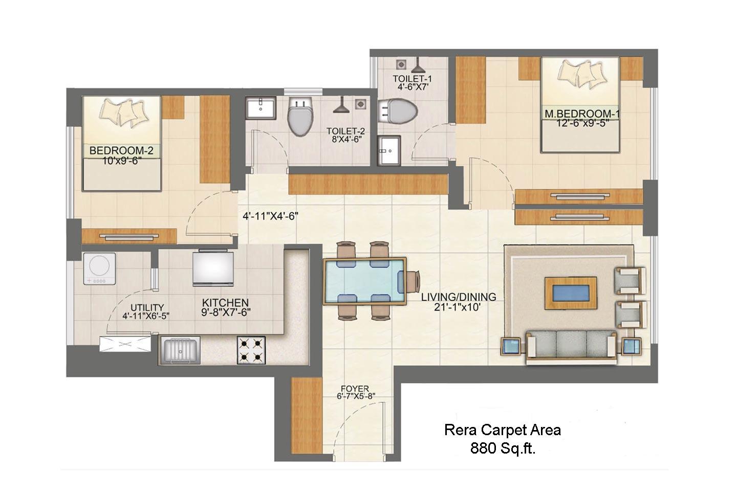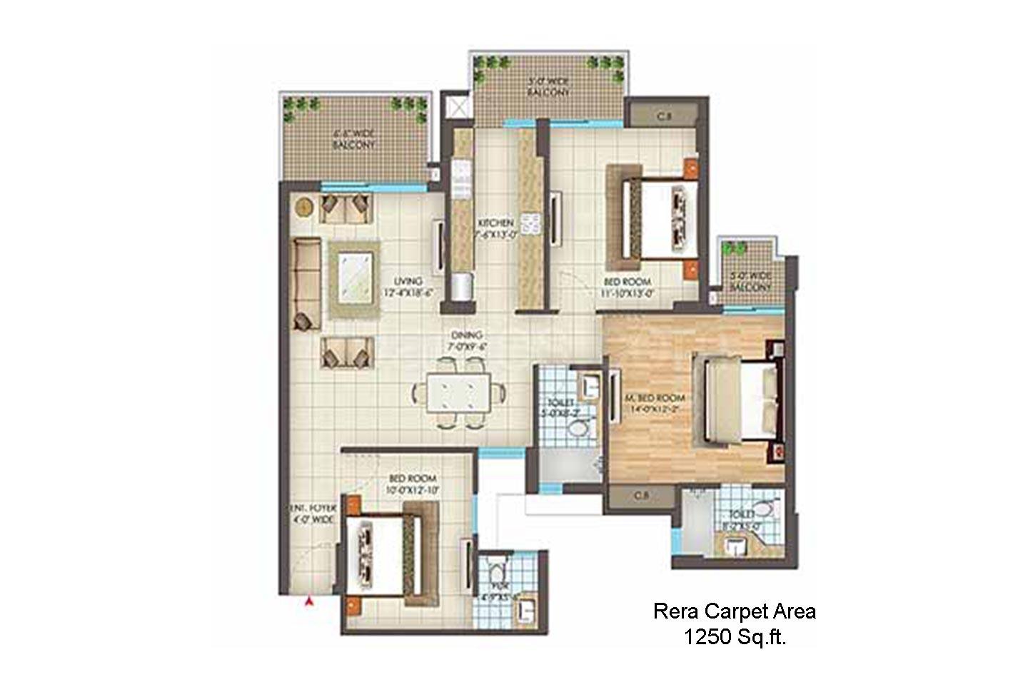Carpet Area : 1103 Sq.ft, 1266 Sq.ft.