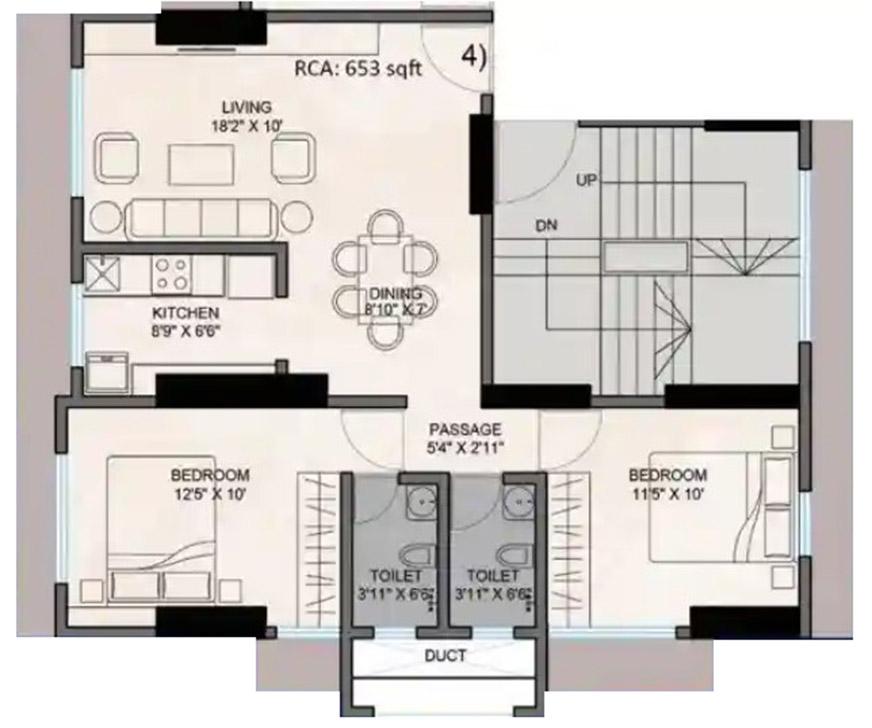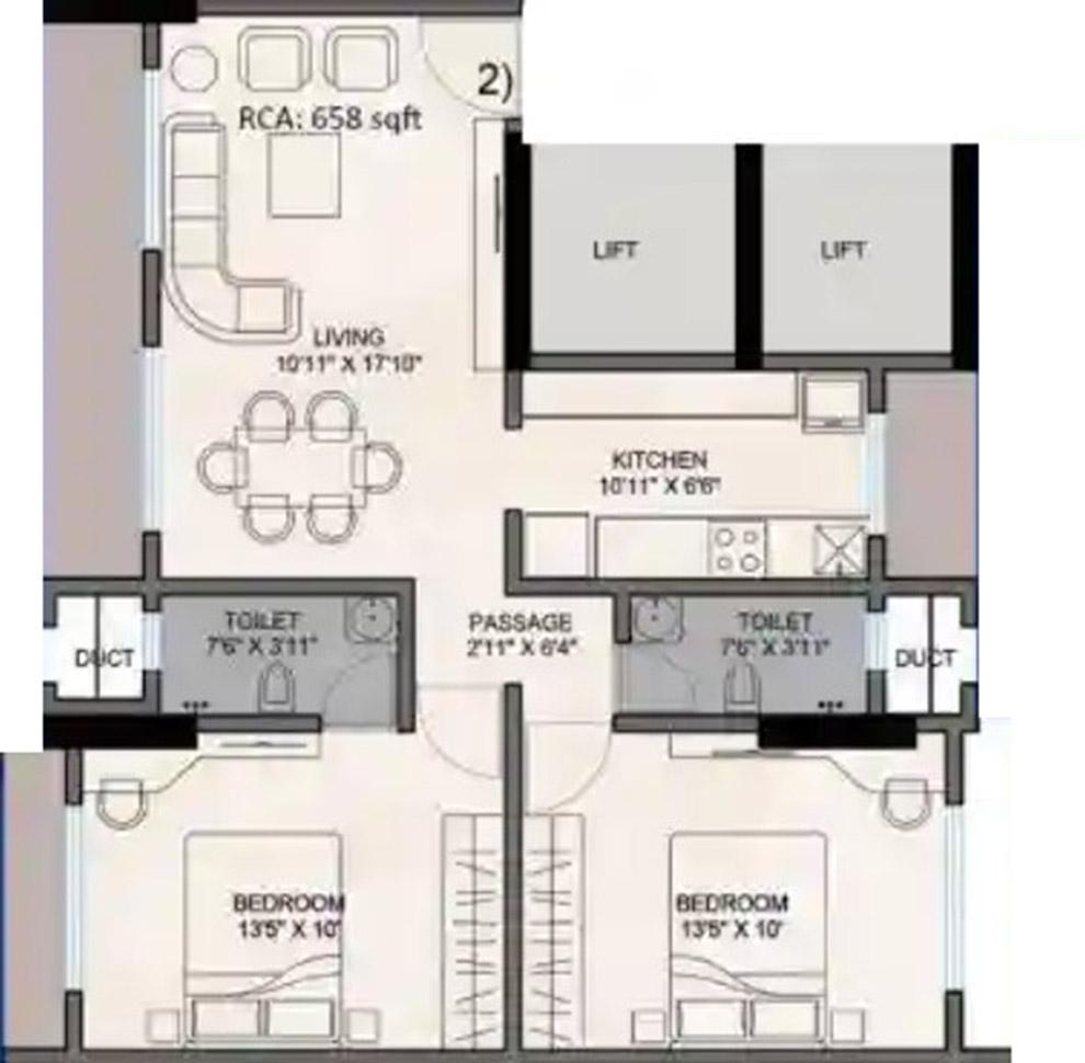 Carpet Area: 653 Sq.ft, 658 Sq.ft